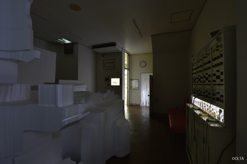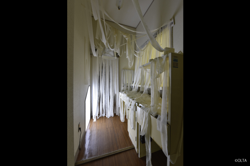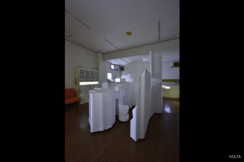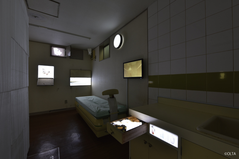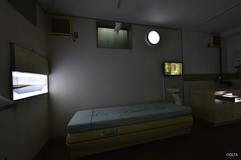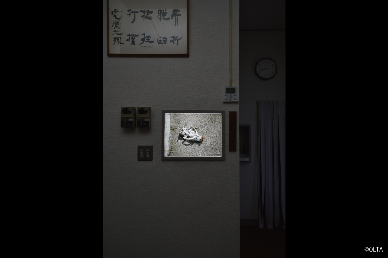 “Port island” is an uninhabited island made by dredge soil located in the middle of the Port of Nagoya. Inspired from a discovery of a skeltonized bird, keywords of the work are “uninhabited island” and “bones”.The venue was formerly on arthopedic clinic, which strangely links to OLTA’s background that have been exhibiting works related to bodies.
