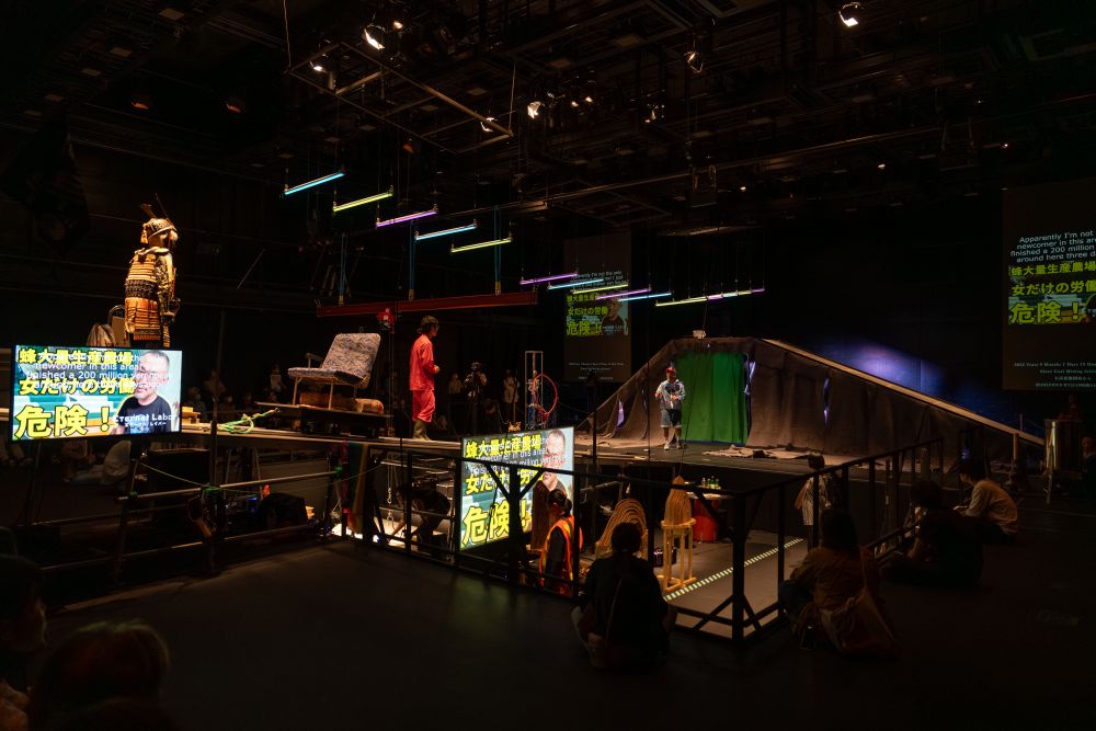 私たちの生きる都市はどのような「鉱山」で、日々そこで私たちはいかに身体と言葉を使い、使わされ、どこに運ばれ、何を掘り出し、また埋めるようにして生きているのか。劇場の中の観客はインスタレーションの内部に作られた観客席で、劇場の外の観客は映像で内側を覗き込むように、自然/都市/労働にあらたな視界を切りひらく一つの旅を体験するでしょう。